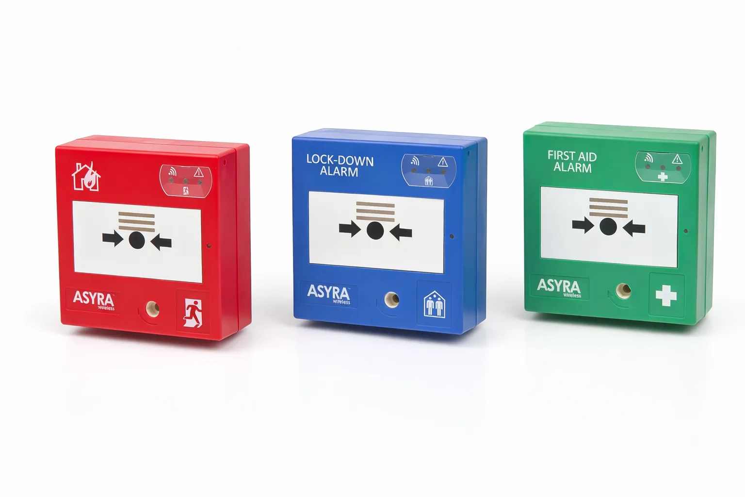 This addressable ASYRA wireless system creates a network of 2 to 254 elements around a master Callpoints which can be placed in the center of the installation to double the maximum range. Two alarm channels can be paired on the same radio network to enable a wide variety of applications from simple wireless point to point alarm initiation for general safety applications to combined Fire alarm and lockdown alarms.
